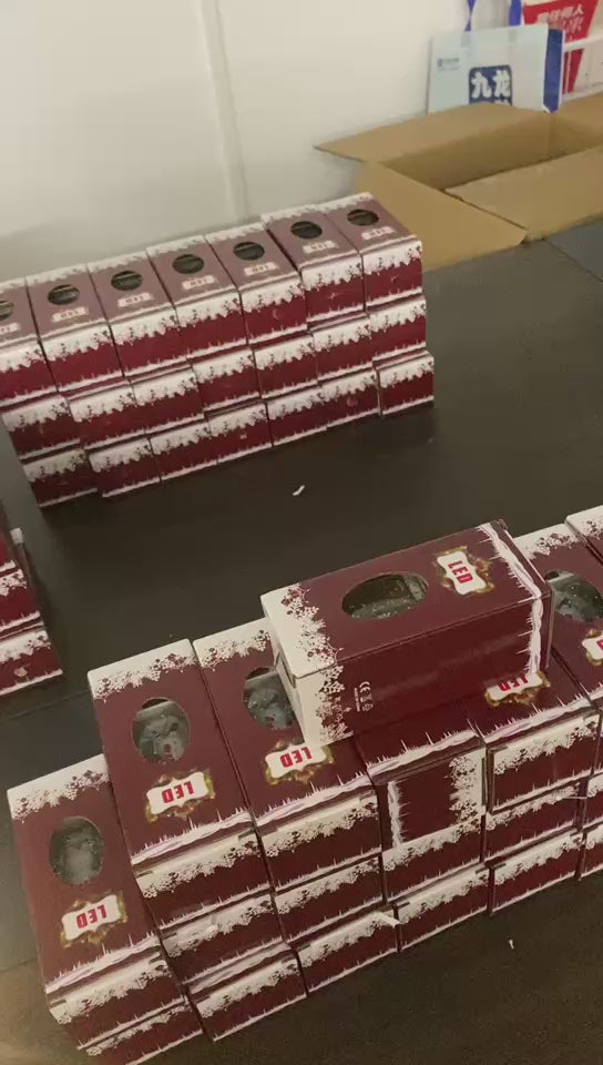 Bola de cristal navideña con luces LED, Santa Claus y muñeco de nieve. Tamaño 11,5×5,5×5,5 cm, hecha de PVC y componentes electrónicos. Con batería de botón LR44 incorporada. Diseño simple y colorido, ideal como regalo navideño o adorno de mesa.