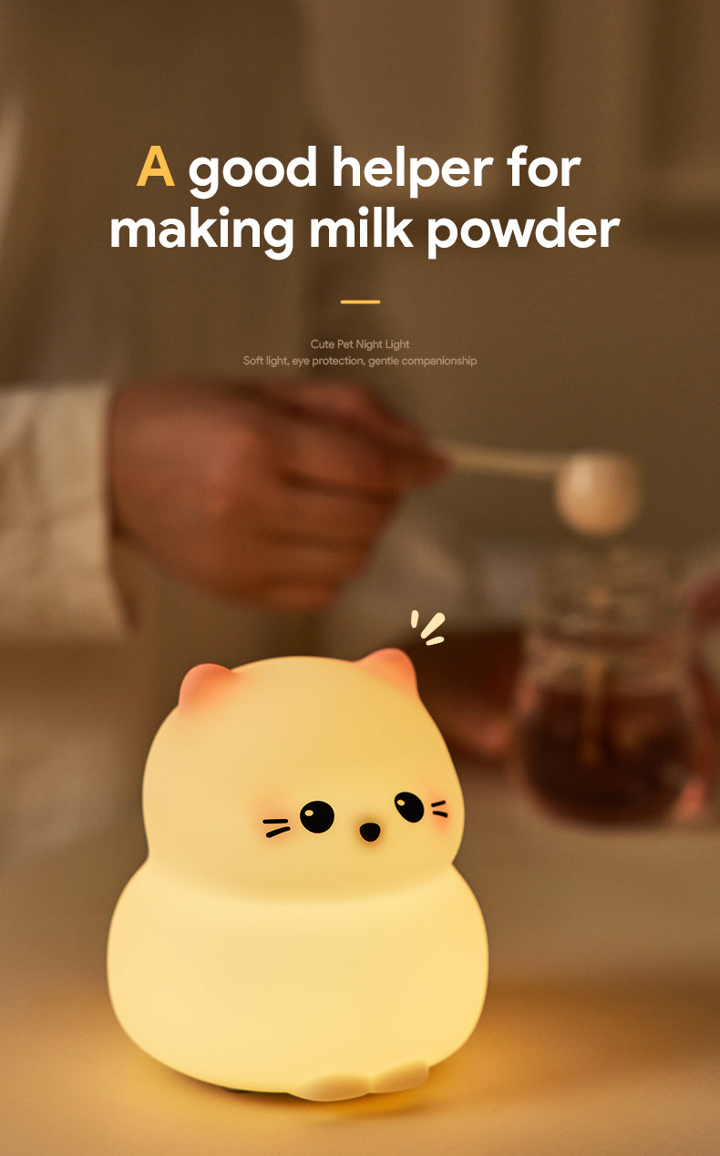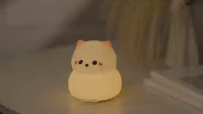 Lámpara de Noche Gato Guardián – LED Recargable 5V, 2W, Silicona y ABS
