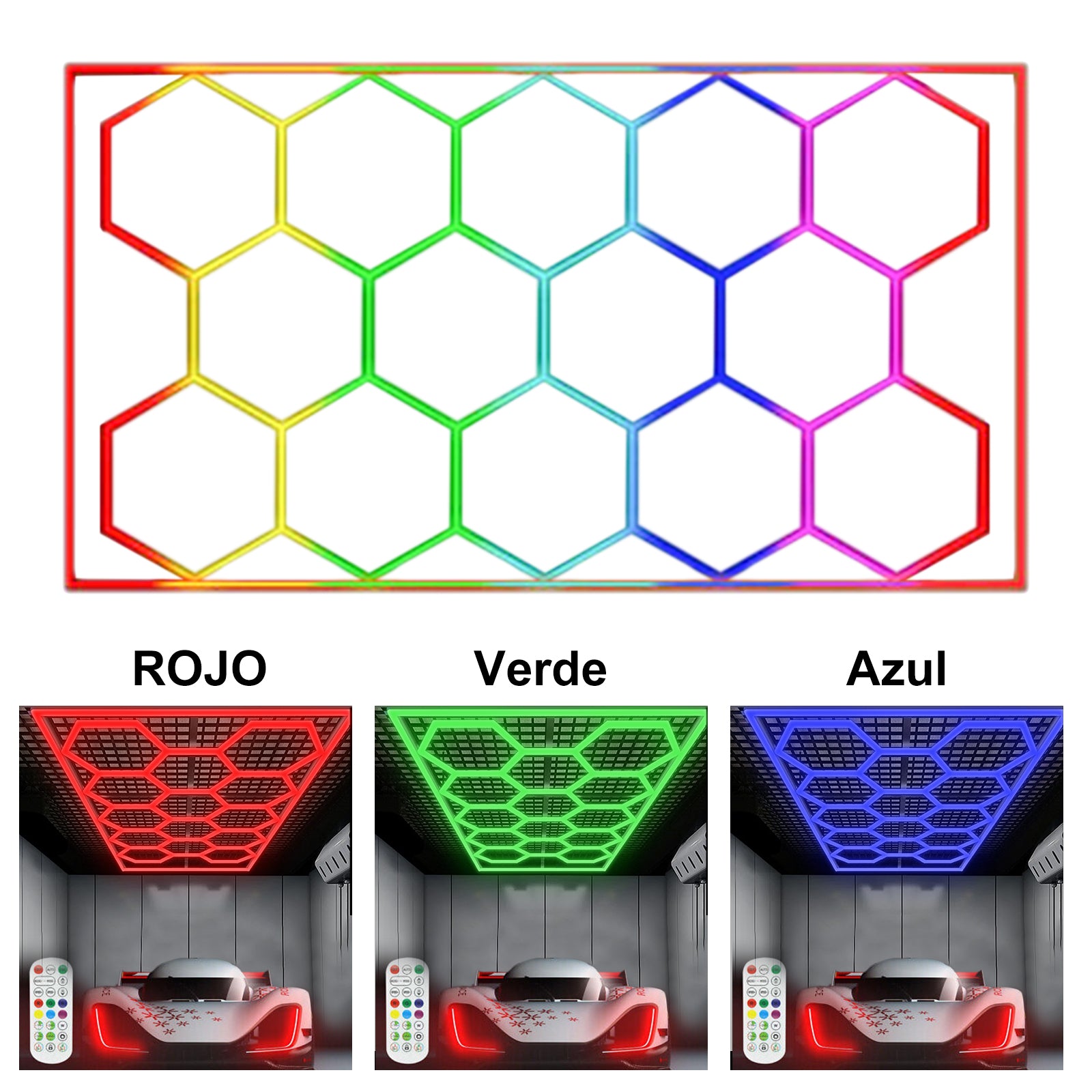 Panel LED Hexagonal Modular Hola LED 14PCW – RGB + Blanco, Techo, Garaje y Gimnasio