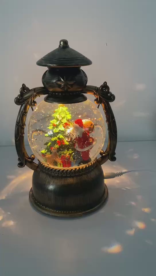 Bola de cristal con Santa Claus iluminada por LED, ideal como decoración de mesa navideña y regalo especial. Hecha de PVC de alta calidad, con tamaño 13×11×20,5 cm y peso 1012 g. Incluye lámpara de aceite portátil de estilo retro. Funciona mediante carga USB (cable incluido), perfecta para iluminar y decorar en Navidad y en el hogar.